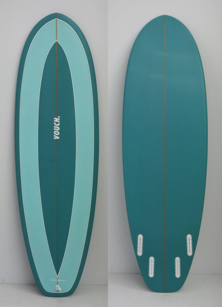 LAYUP: 6oz bottom with fin patch, 1 x 6oz and 1 x 4oz deck.